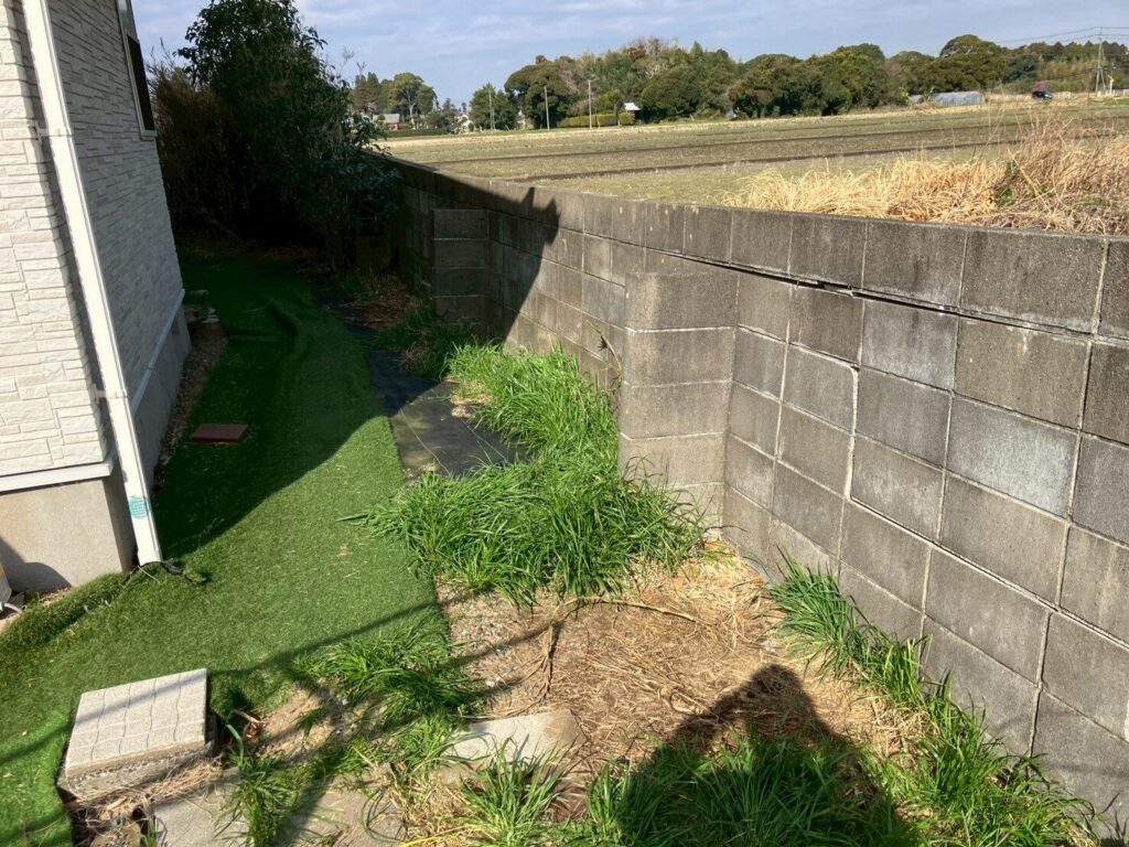 既存のブロックが傾いてしまい、地震がきたら倒壊してしまう恐れがある為